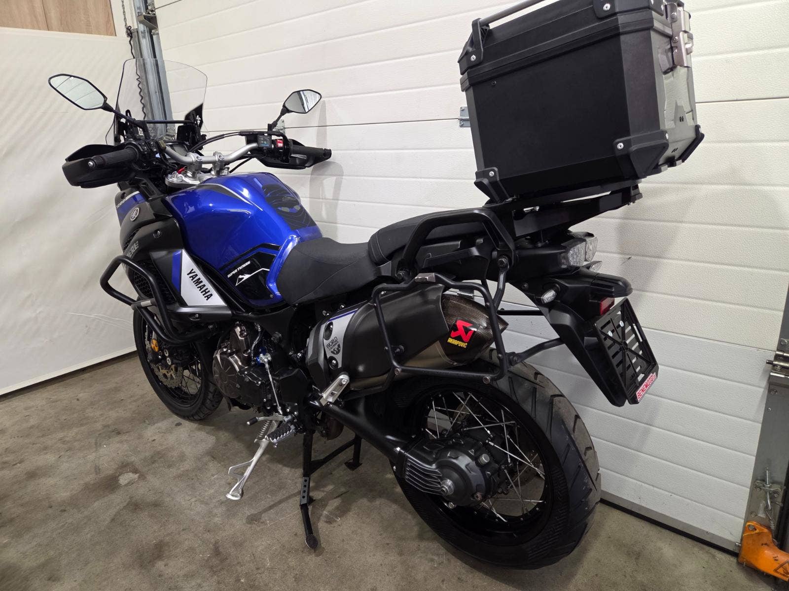 Výbava: 3x kufry, centrální stojan, padací rám, přídavná světla, blastry, výhřev rukojetí, palubní PC, ABS, TC, mapy, výfuk Akrapovič s homologací, vysoké plexi, zásuvka, tempomat, racing pístek ovládání spojky.